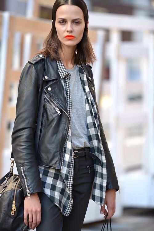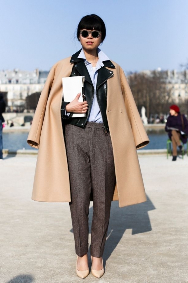 - Procura que cada capa sea visible y que sus colores y estampados, sean compatibles. También es el momento ideal para jugar con las telas en un look monocromático. Por ejemplo, en un look totalmente negro, mezcla algo ligero, con tejidos y luego cuero.