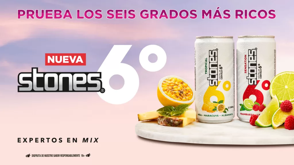 Por eso Stones presenta su nueva versión "Seis" en dos versiones Tropical y Sensation. Estos cócteles frutales de cerveza son perfectos para beberlos solos o combinarlos para crear un trago explosivo y delicioso.