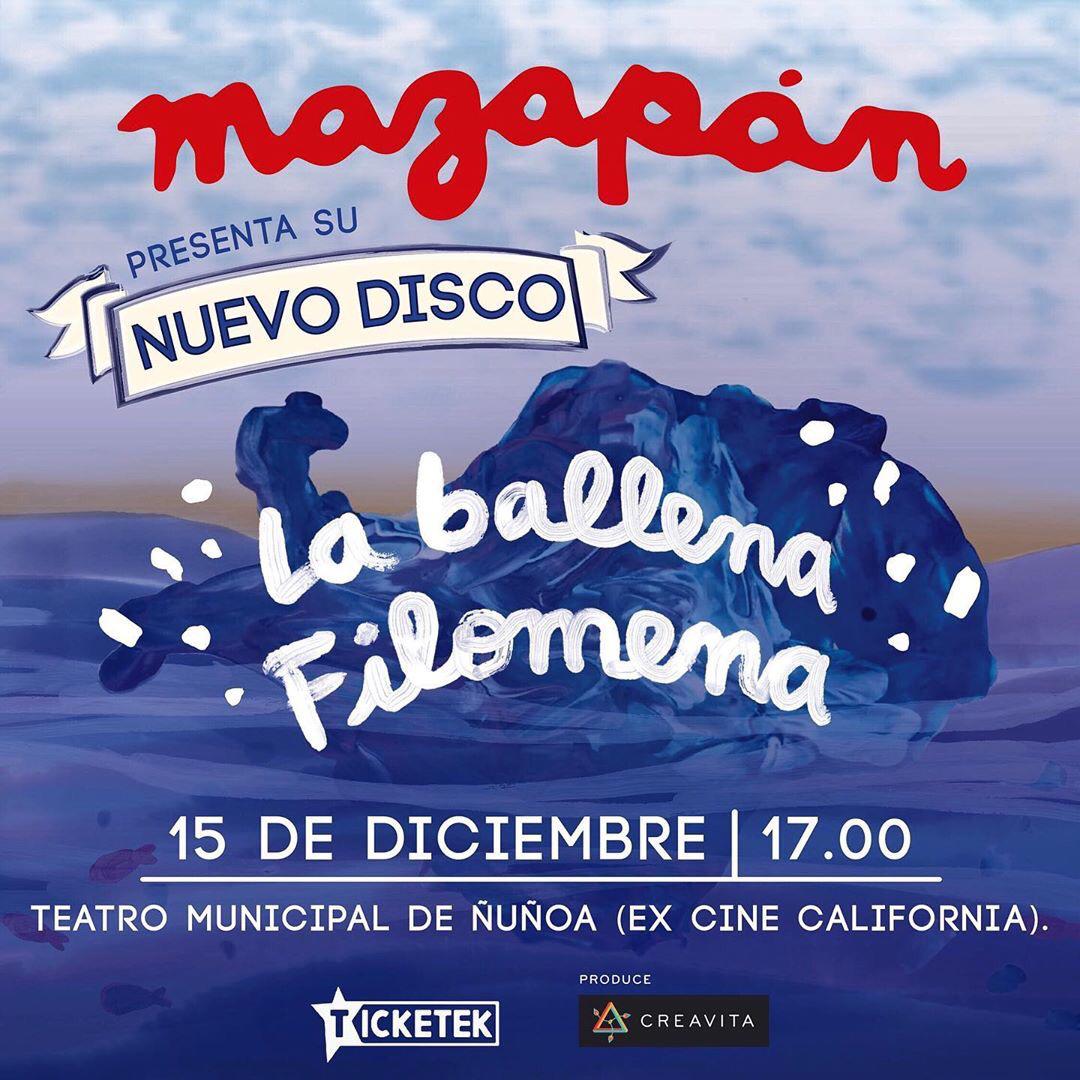 Este domingo 15 de noviembre, el famoso grupo Mazapán donde van a estrenar en vivo su nuevo disco llamado "La Ballena Filomena". Este nuevo álbum llega tras 15 años.