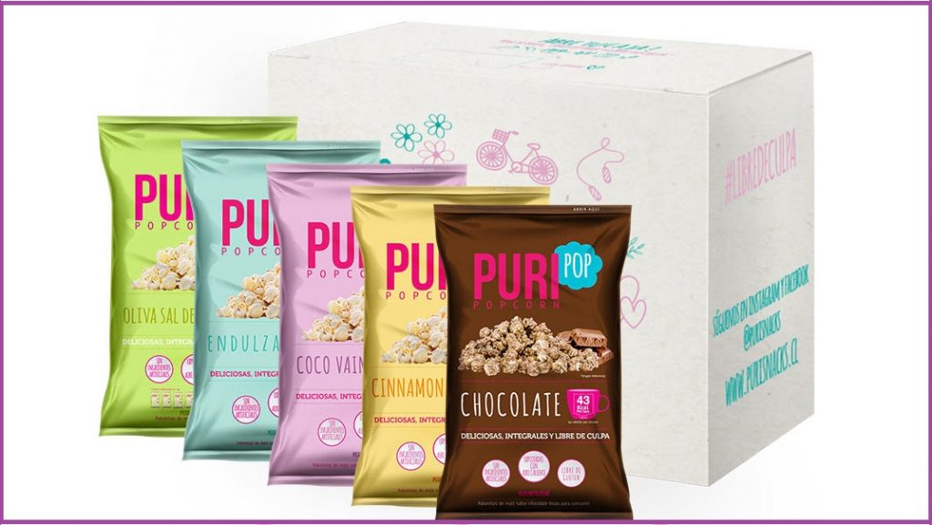 -PuriPop: Cabritas explotadas únicamente con aire caliente, elaboradas con ingredientes naturales. En sus variedades de sabor; endulzadas, cinnamon roll, oliva sal de mar, coco vainilla, y chocolate.