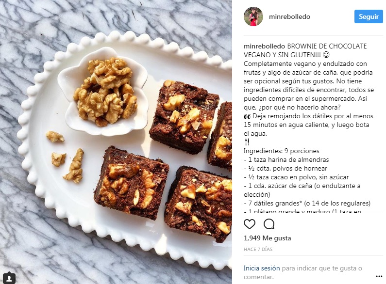 Además, trae en su contenido algunas recomendaciones de snack y colaciones saludables tanto para los niños como para los adultos. Por ejemplo, un brownie vegano y sin gluten que también está disponible en su cuenta de Instagram.