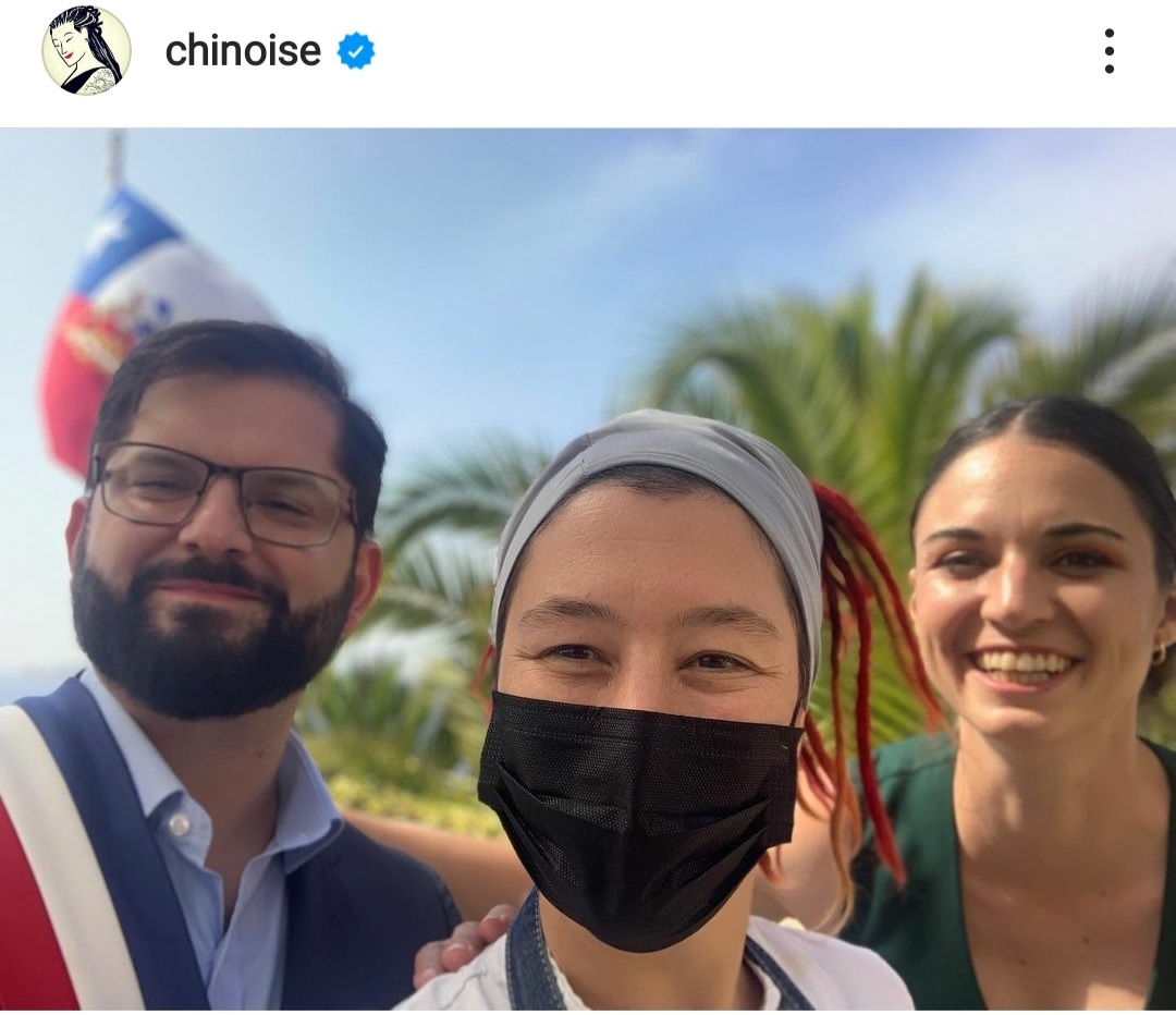 "No sé si este será el peak de mi carrera, pero está bastante cerca! 🌳", escribió China en su Instagram para acompañar una imagen junto al presidente Gabriel Boric y la primera dama Irina Karamanos.