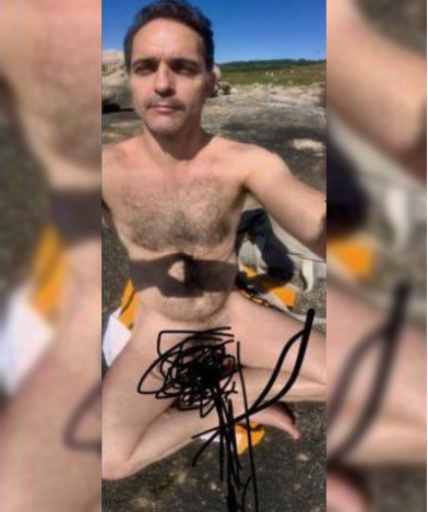 En la foto sale completamente desnudo, en una playa, pero autocensuró sus partes íntimas con un dibujo.
