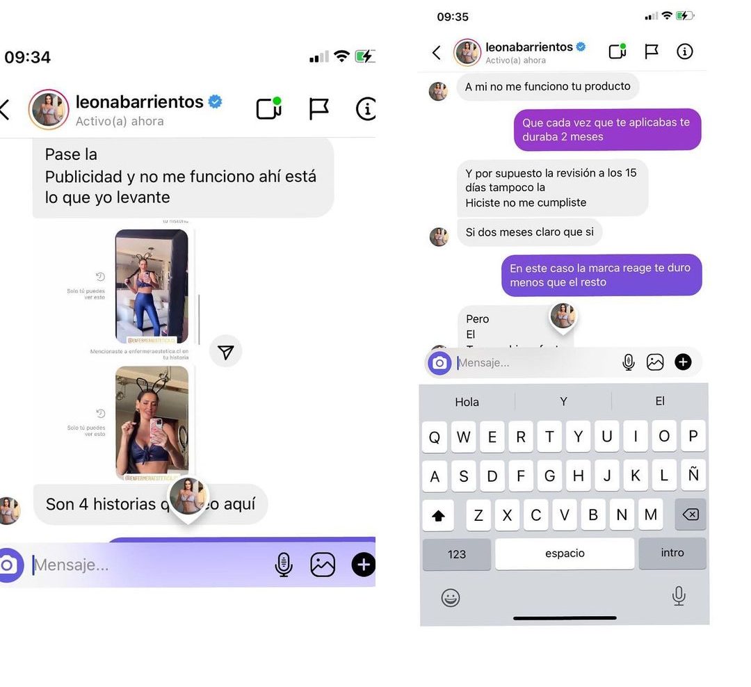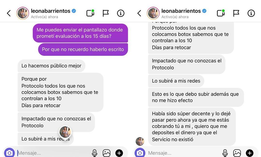 'Para tener mayor alcance decidí cobrar el acuerdo a la sra de subir una historia a los 2 meses. Increíblemente me cobra ya que se siente estafada porque el botox no le funcionó. ACLARACIÓN como existe resistencia a los antibióticos, también existe resistencia con la toxina. Ella se aplica cada dos meses hace ya varios años, por lo tanto, obviamente no le dura nada o no le hace efecto', fue parte de lo que reveló.