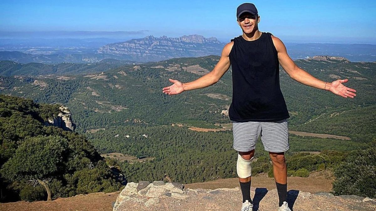 Luego se puede ver al futbolista en una bella puesta de sol caminando por una pequeña montaña visiblemente feliz con su familia.