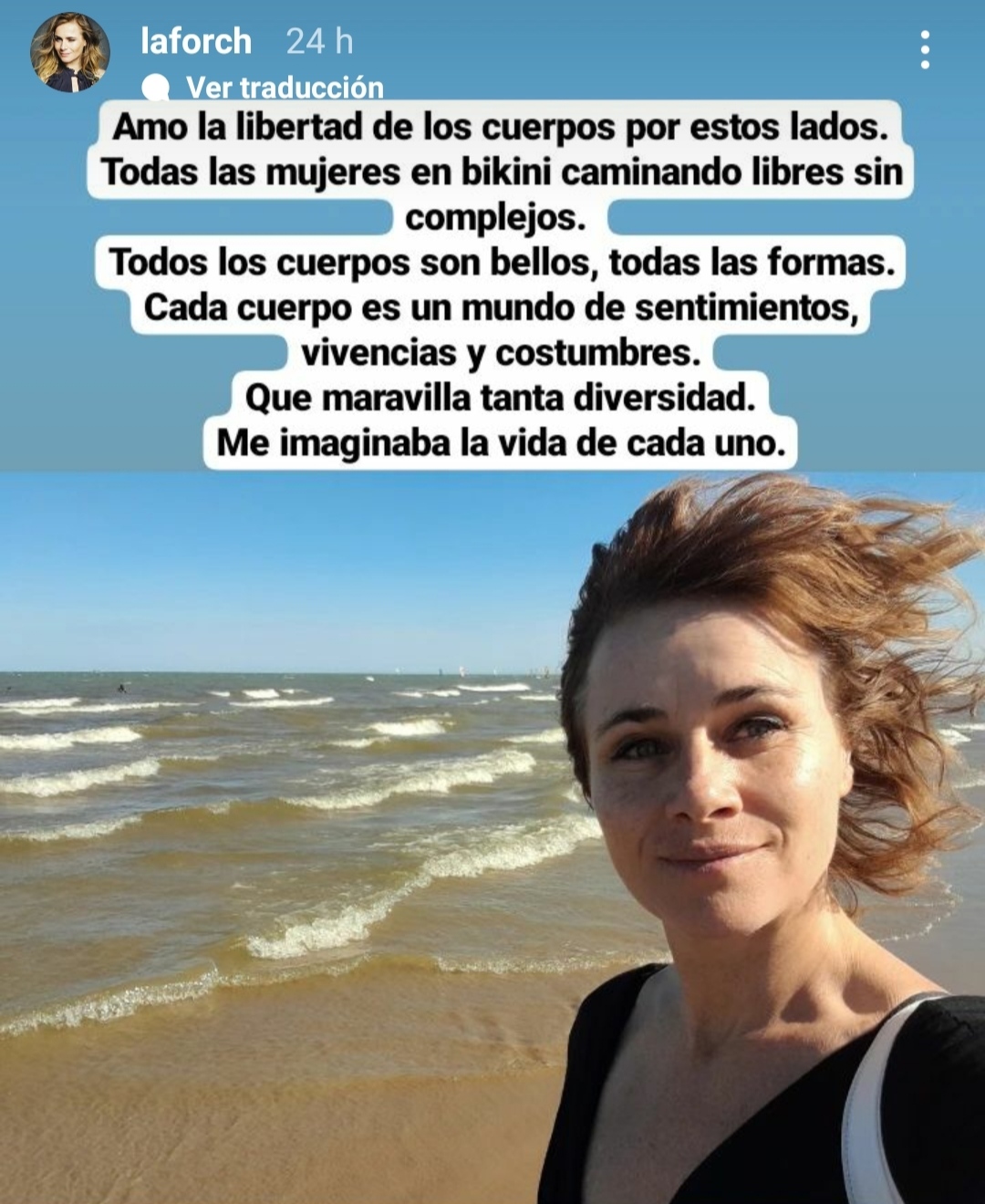 "Amo la libertad de los cuerpos por esos lados. Todas las mujeres en bikini caminando libres sin complejos", reflexionó Amaya Forch desde una playa en Rímini.