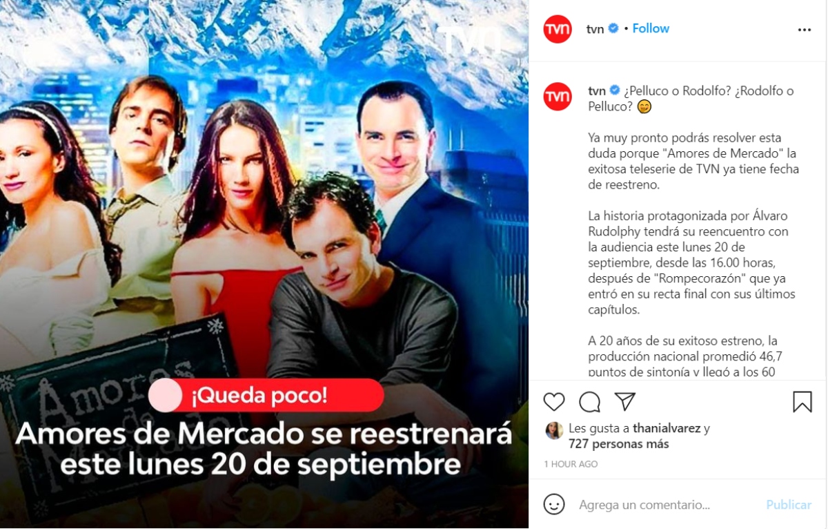 "La historia protagonizada por Álvaro Rudolphy tendrá su reencuentro con la audiencia este lunes 20 de septiembre, desde las 16.00 horas, después de "Rompecorazón" que ya entró en su recta final con sus últimos capítulos," expresó el canal en su perfil de Instagram.