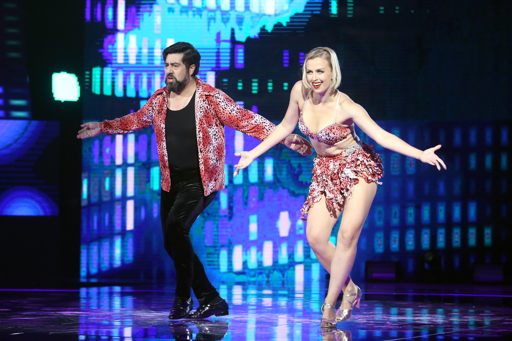 Los primeros participantes en bailar fueron Vivi Rodrigues y Matías Falcón, quienes hicieron una interpretación de “Pégate”, de Ricky Martin.