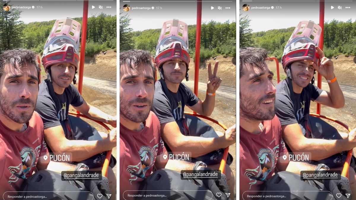 “Partimos estas vacaciones y miren a quien tengo al lado, con mi primo (Pedro Astorga) subiendo el volcán. Nos vamos a tirar en bici hoy día. Primera aventura, porque se viene con todo”, comenzó diciendo en un video que compartió en sus historias.