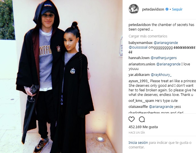 La pareja comenzó una relación luego de que Ariana Grande terminara su noviazgo con el rapero "Mac Miller", en mayo. Y compartieron una foto vestidos con las capas de "Harry Potter" para dar a conocer su relación.