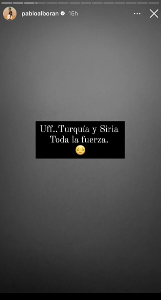 Pablo Alborán es otro de los artistas que sumó condolencias por las víctimas del terremoto en Turquía y Siria. En sus historias, escribió: "Uff... Turquía y Siria, toda la fuerza".