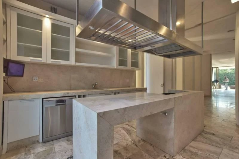 Además, en la zona común tiene una chimenea y una amplia cocina. El piso de la casa es de mármol, mientras que sus paredes de fachada son de piedra.