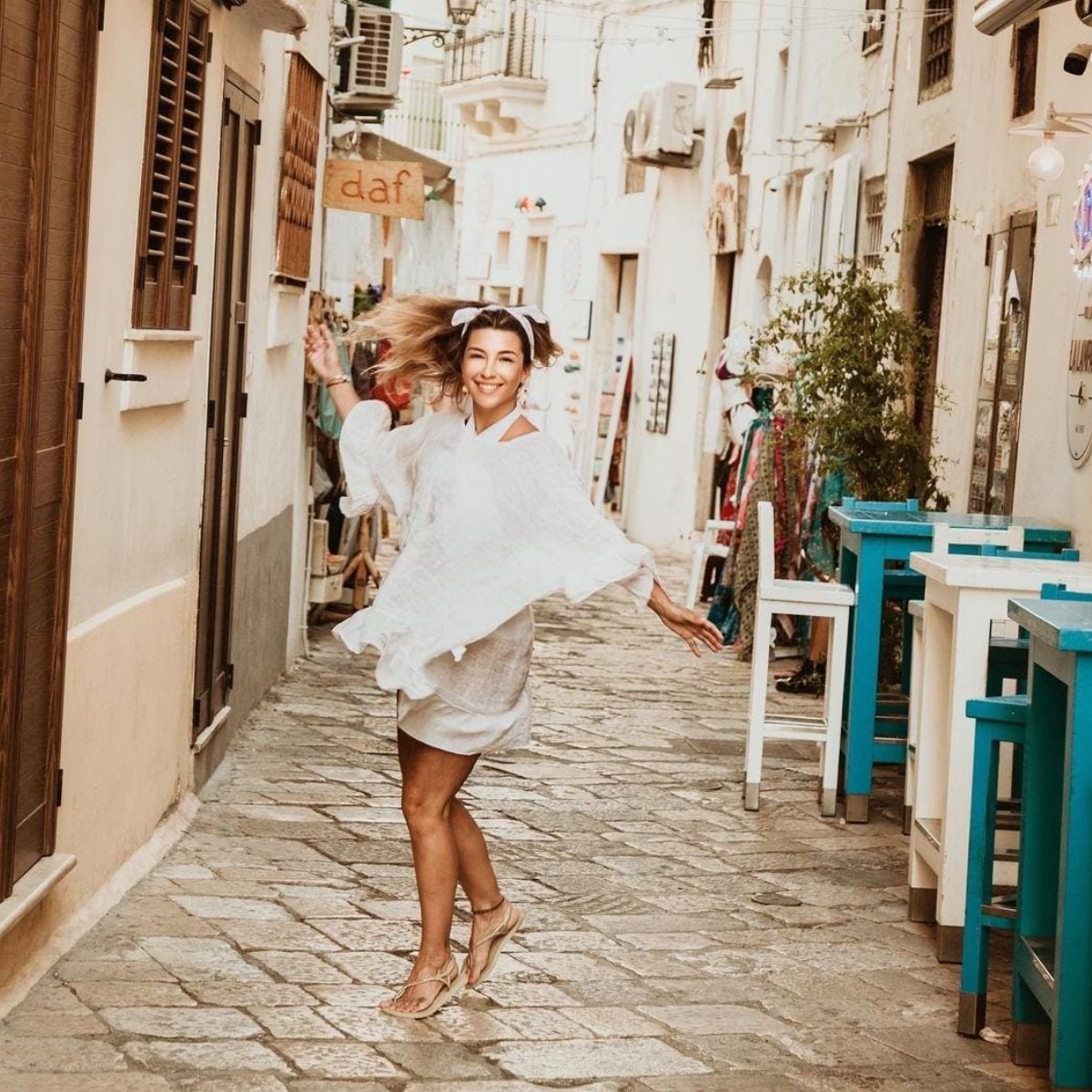 Con una sonrisa de oreja a oreja, la actriz aparece luciendo un vestido de su propio emprendimiento de ropa.