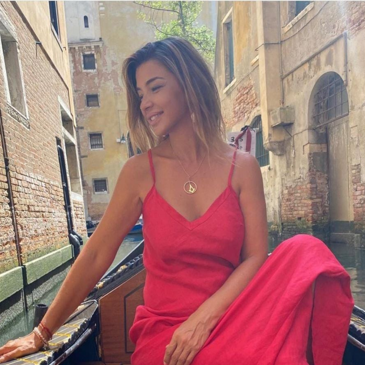 Esta es una de las fotos más icónicas que uno puede ver de Venecia, un bote donde se recorren una de las aguas más conocidas de Italia. Aquí Pancha Merino con un vestido rojizo, se mostró relajada en la fotografía desprevenida.