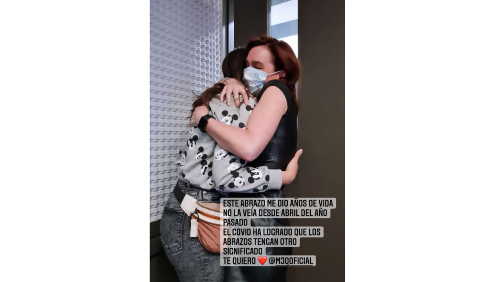 Luego, compartió otra postal en la que acotó: "Este abrazo me dio años de vida. No la veía desde abril del año pasado. El COVID ha logrado que los abrazos tengan otro significado".