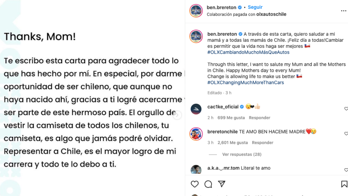 Para finalizar, Ben Brereton agregó: “Gracias mamá por mostrarme mi segunda casa, gracias a ti cambié mi destino, la manera de vivir el fútbol, cambiar mi apellido a Brereton Díaz. Los cambios siempre son bienvenidos, y con tu apoyo incondicional, se que lograré todo lo que me proponga”, .