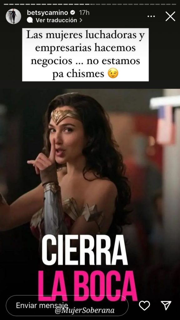 Luego publicó otra historia la cual es la única que se mantiene en su Instagram que indicaba que "Las mujeres luchadoras y empresarias hacemos negocios...no estamos para chismes", haciendo alusión a su vida profesional.