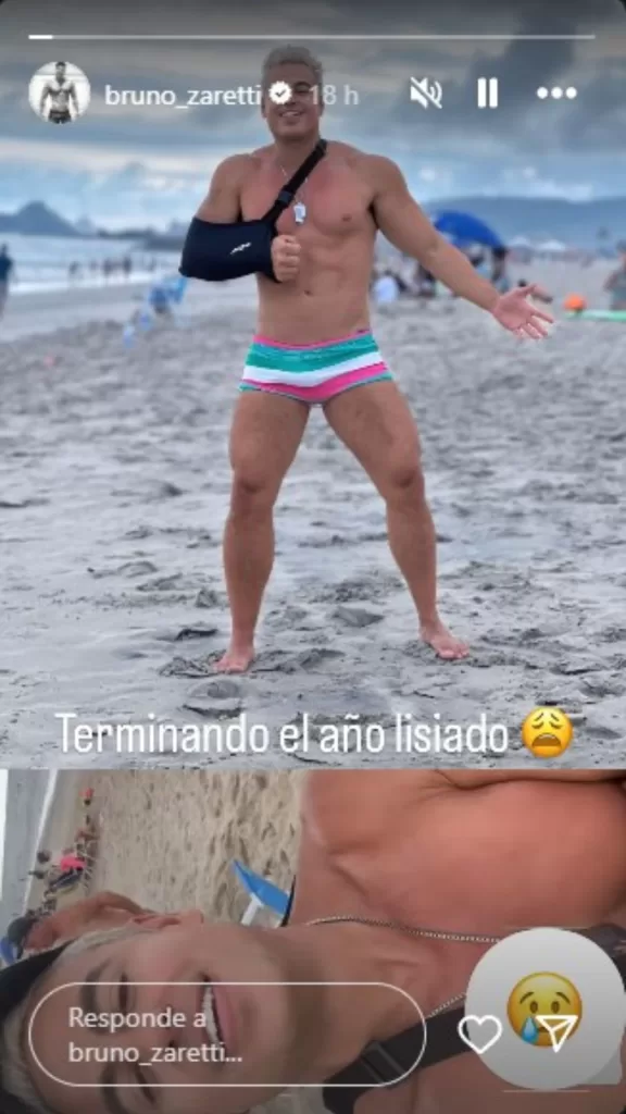 “Me jodí. El primer lisiado… Sí, me jodí con el brazo, pero no hay nada que hacer. Empezar el año lisiado”, agregó Bruno Zaretti preocupando a sus seguidores y sin detallar cómo se lastimó.