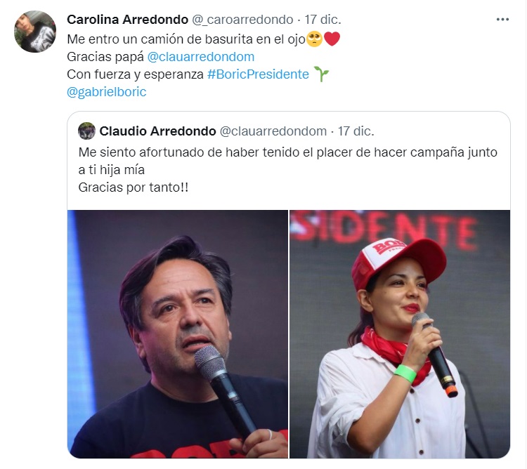 Y una vez definido el triunfo del candidato de Apruebo Dignidad, Carolina Arredondo compartió una nueva foto junto a su papá.