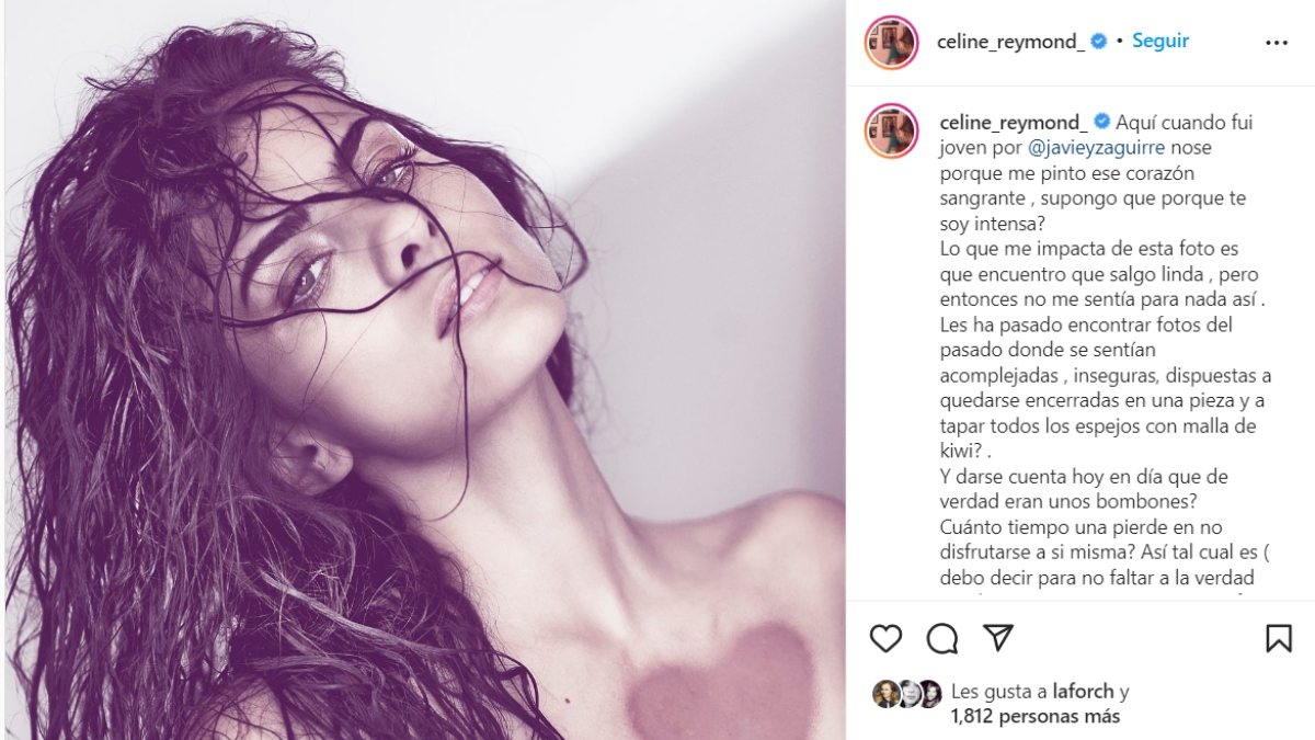 "Aquí cuando fui joven. No sé porqué me pinto ese corazón sangrante, supongo que porque te soy intensa?", partió diciendo Celine Reymond en su perfil de Instagram.