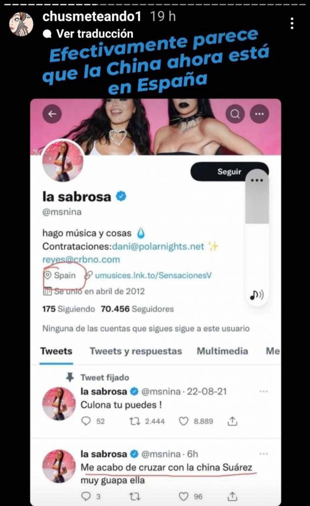 Adicionalemente, en esta página de Instagram mostraron testimonios de personas que aseguran haberse cruzado con China Suárez en las calles de España: