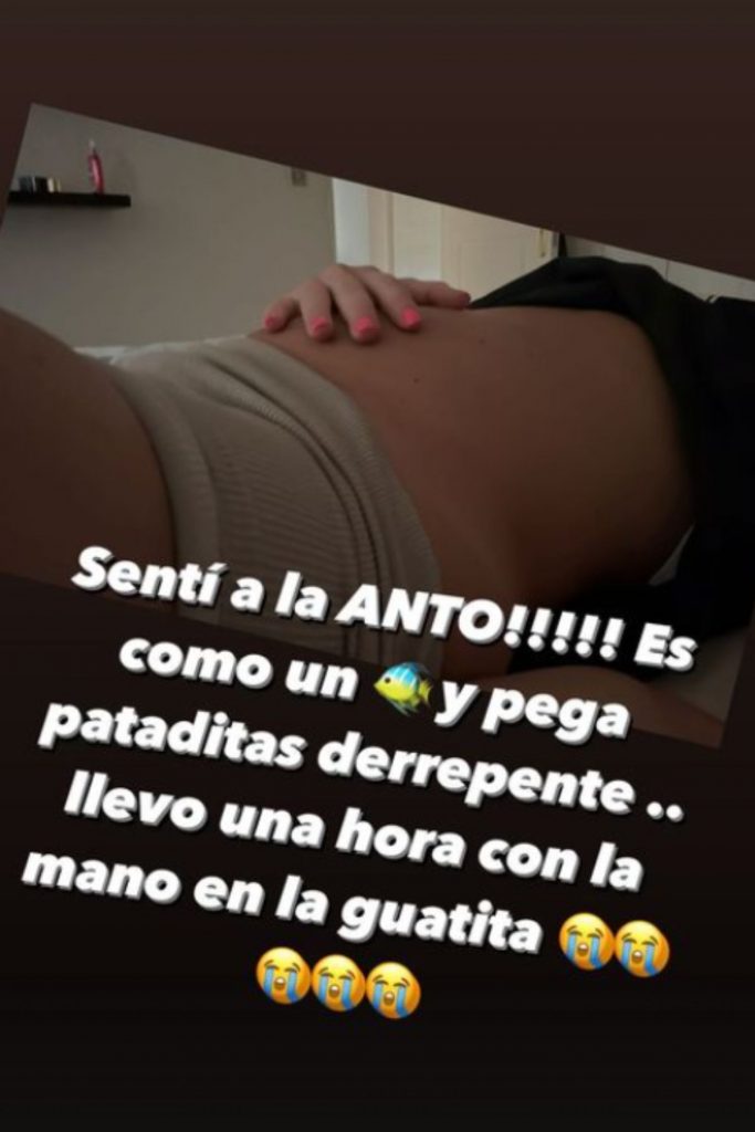 "¡Sentí a la Anto! Es como un pez y pega pataditas de repente. Llevo una hora con la mano en la guatita😭", escribió.