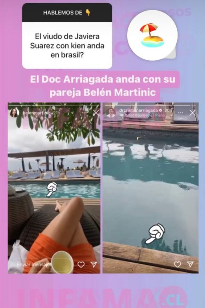 El medio Infama, pionero en compartir premisas del mundo del espectáculo, comparó dos fotografías, la de Cristián Arriagada y de Belén Martinic, quien sería su nueva pareja.