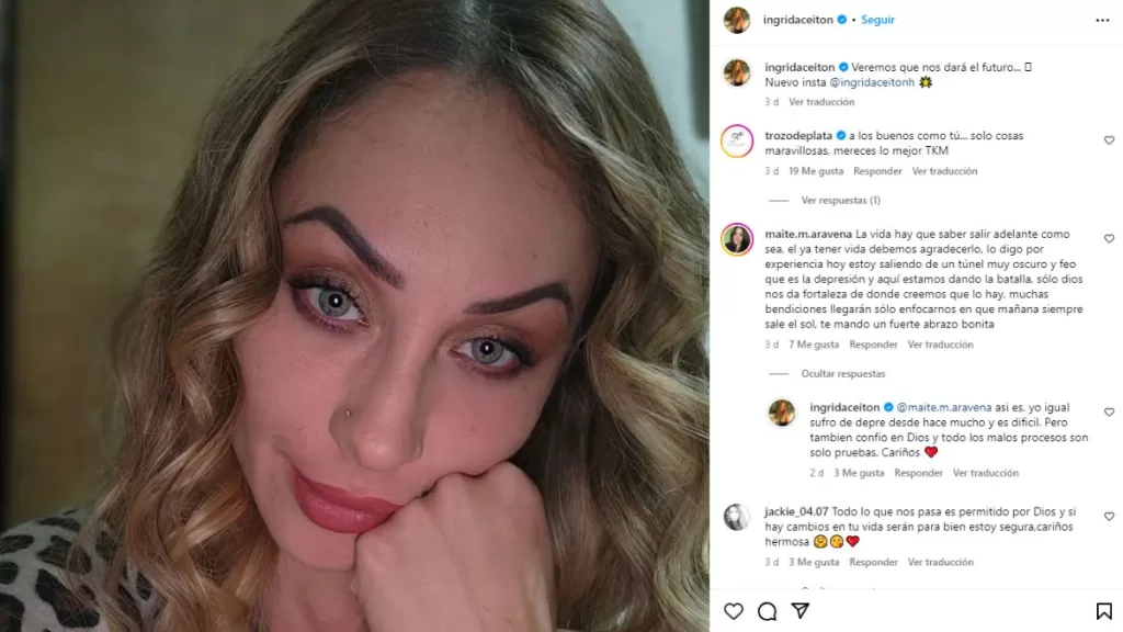 "La vida hay que saber salir adelante como sea, el ya tener vida debemos agradecerlo", le escribió una usuaria en un extenso mensaje, a lo que Ingrid Aceitón respondió con una reveladora confesión.