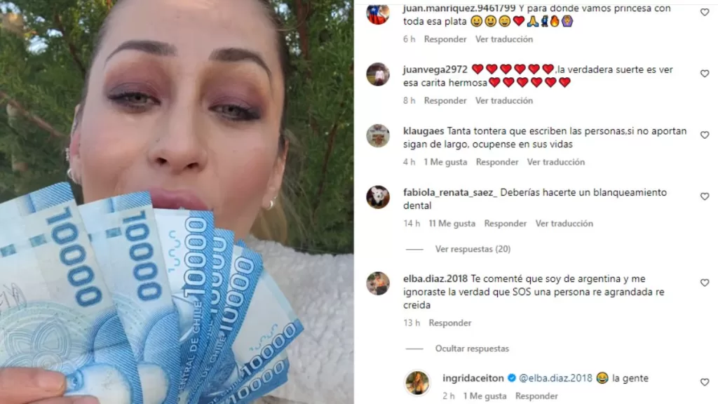 "Sigue invitando a que la gente JUEGUE… Total con su código ella gana millones… y la gente cae en la adicción de JUGAR". "Con esos pocos billetes fácil un blanqueamiento de dientes... invite a la gente a nuevos trabajos, no a perder su dinero". "Deberías hacerte un blanqueamiento dental" o "Sos una persona re agrandada, re creída", fueron algunas de las reacciones a su publicación.