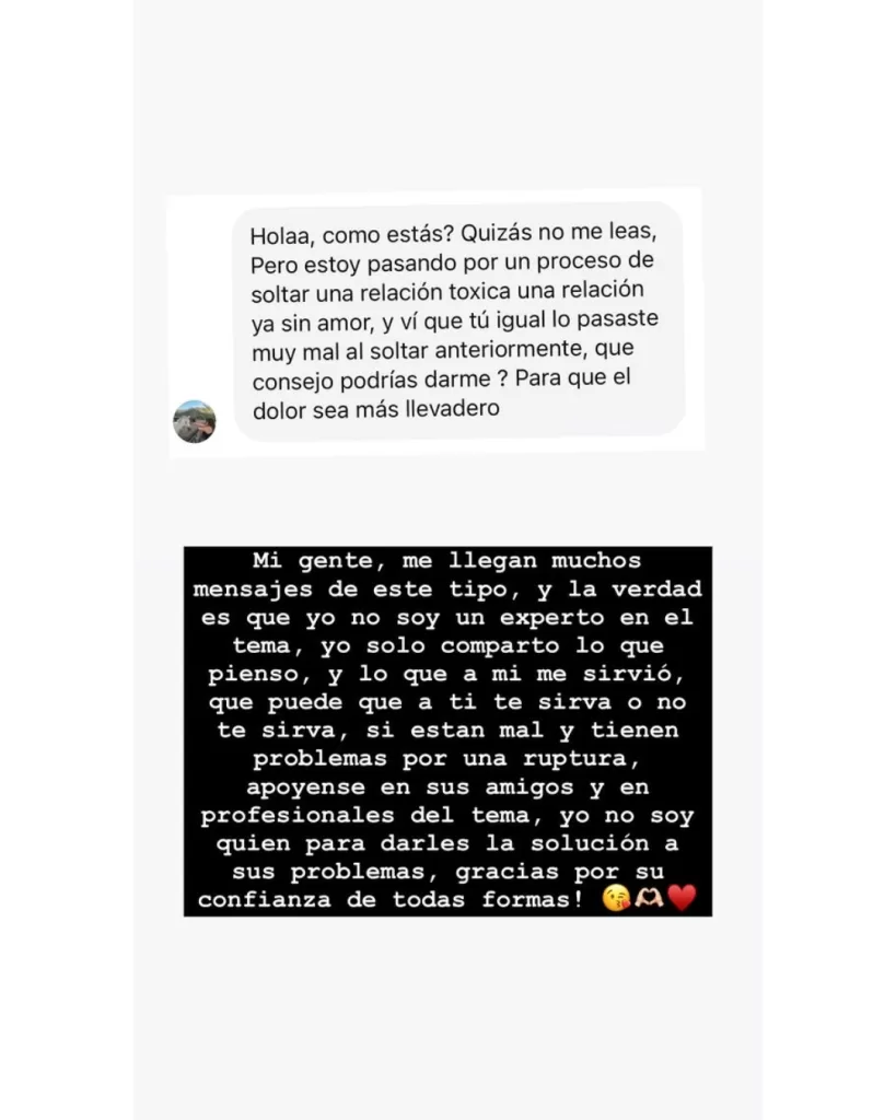 Muchos de ellos aprovecharon la instancia para contarle sus propias experiencias y dramas amorosos, buscando algún tipo de consejo. Entre los mensajes, destacó el de una persona que le pidió ayuda para salir de una relación tóxica.