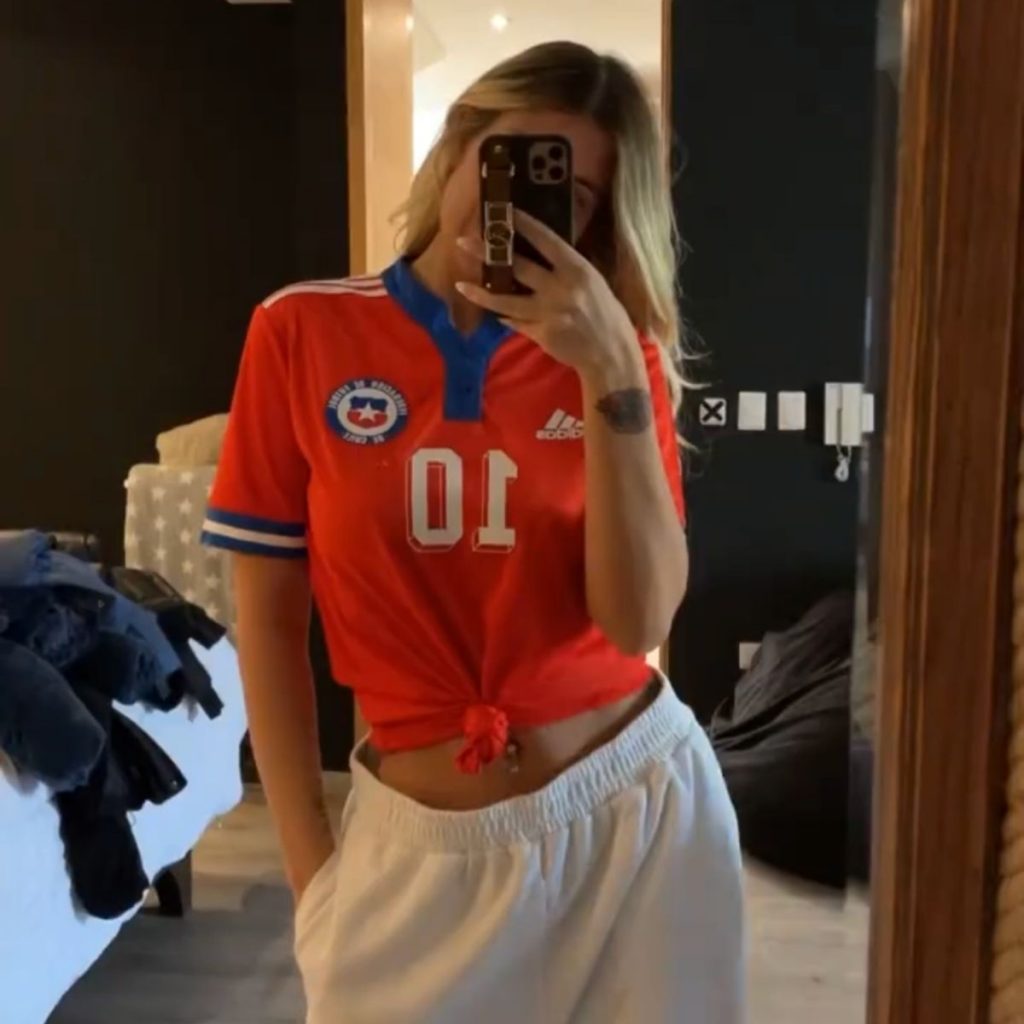 Mientras tanto, la ex pareja de Arturo Vidal, Marité Matus, también compartió una foto en sus historias con la camiseta de la Selección Chilena.