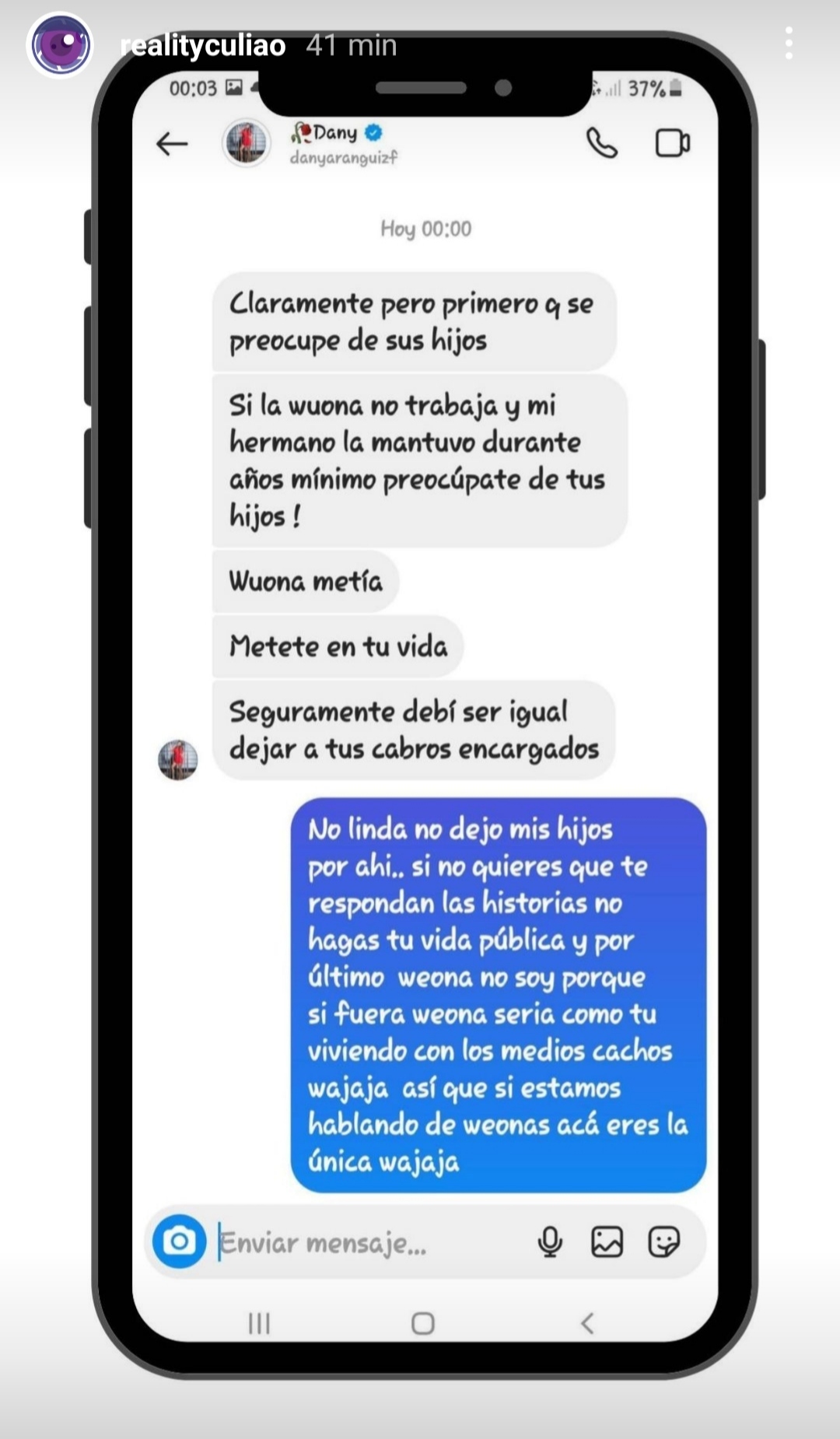 "Claramente, pero primero que se preocupe de sus hijos. Si la we... no trabaja y mi hermano la mantuvo durante años, mínimo preocúpate de tus hijos!", respondió Aránguiz.