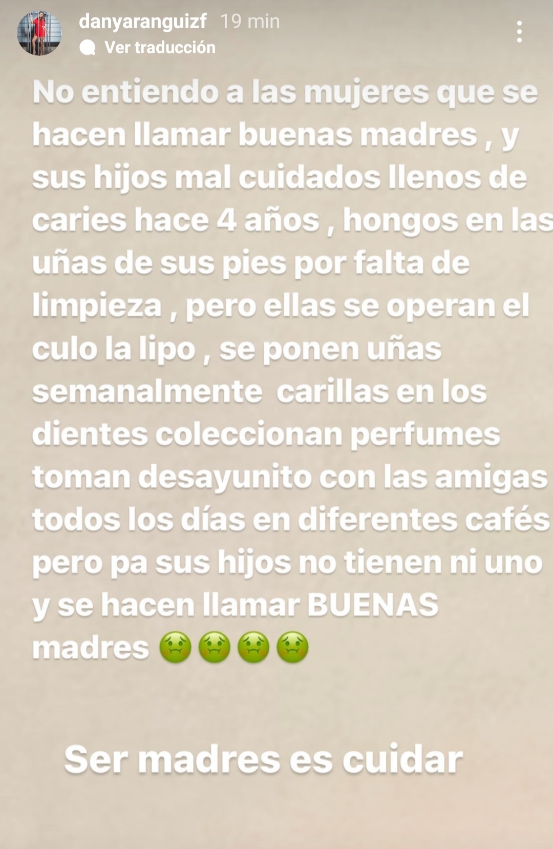 "No entiendo a las mujeres que se hacen llamar buenas madres y tienen a sus hijos mal cuidados, llenos de caries hace 4 años, con hongos en las uñas de sus pies por falta de limpieza", comenzó relatando Daniela Aránguiz