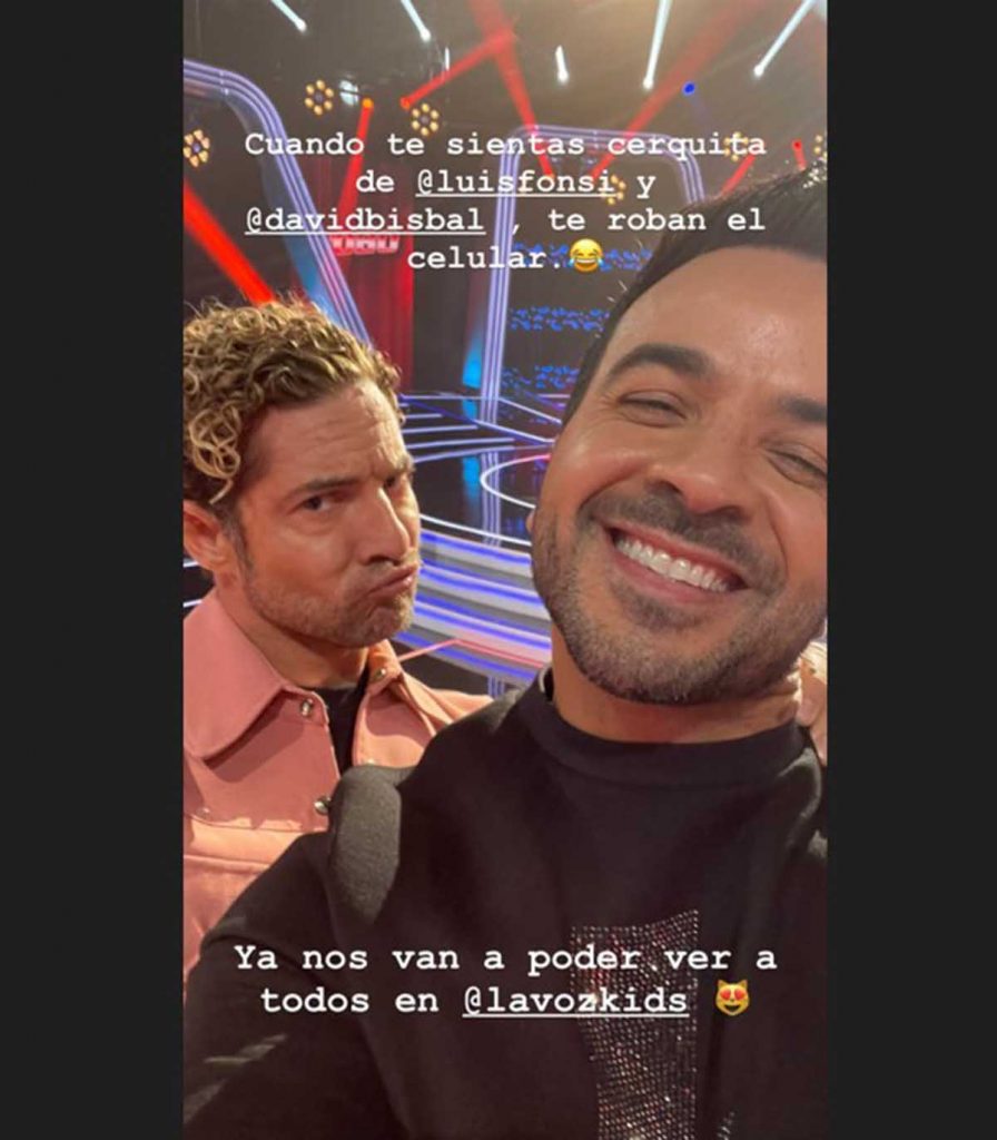 "Cuando te sientas cerquita de Luis Fonsi y David Bisbal, te roban el celular. Ya nos van a poder ver a todos en La Voz Kids", escribió Evaluna, invitada a las grabaciones del popular programa donde también participa la cantante española Aitana, quien se popularizó tras su paso por Operación Triunfo.