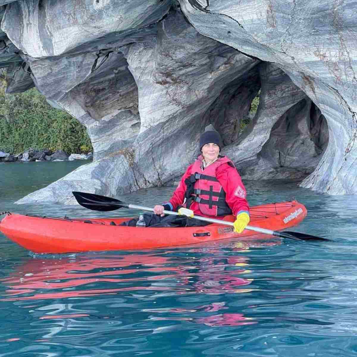 En este contexto, antes de ayer, la animadora se atrevió con una valiente hazaña: se bañó en las heladas aguas del Lago General Carrera. Y ayer visitó las Capillas de Mármol y aprendió a andar en kayak.