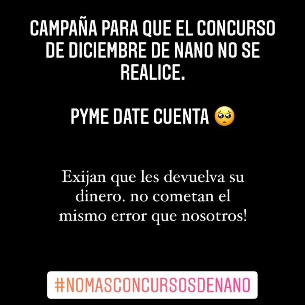 Pero la explicación no quedó ahí, todo se debe a que Nano Calderon pide dinero a Pymes para participar de sus concursos. Luego invita a sus seguidores a seguir una gran lista de emprendimientos en Instagram, para poder ganar una alta suma de dinero.