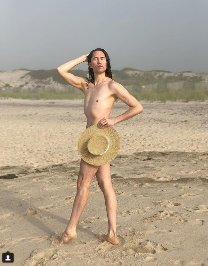 En la foto está completamente desnudo, cubierto tan solo con un sombrero, que resulta ser de una colección de su novio diseñador, Eric Javits.