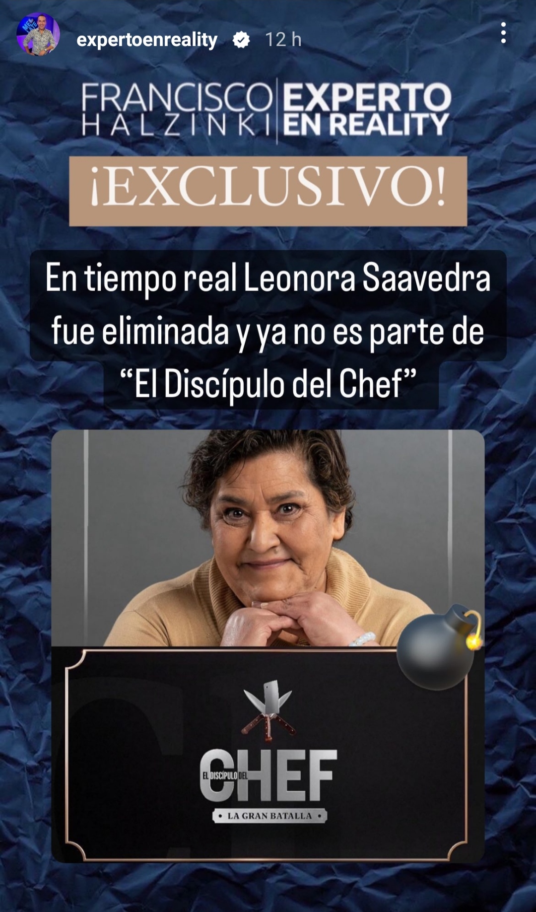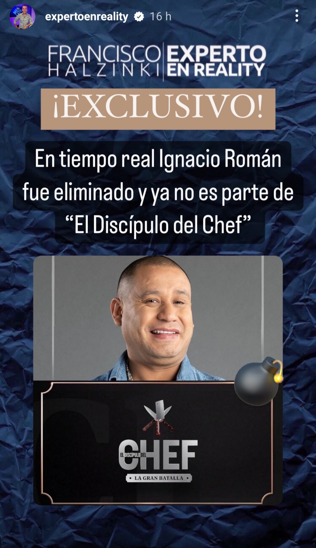 Así, según lo adelantó Francisco Halzinki á través de sus historias, Leonora Saavedra y Nacho Román fueron eliminados y ya no son parte de El Discípulo del Chef.