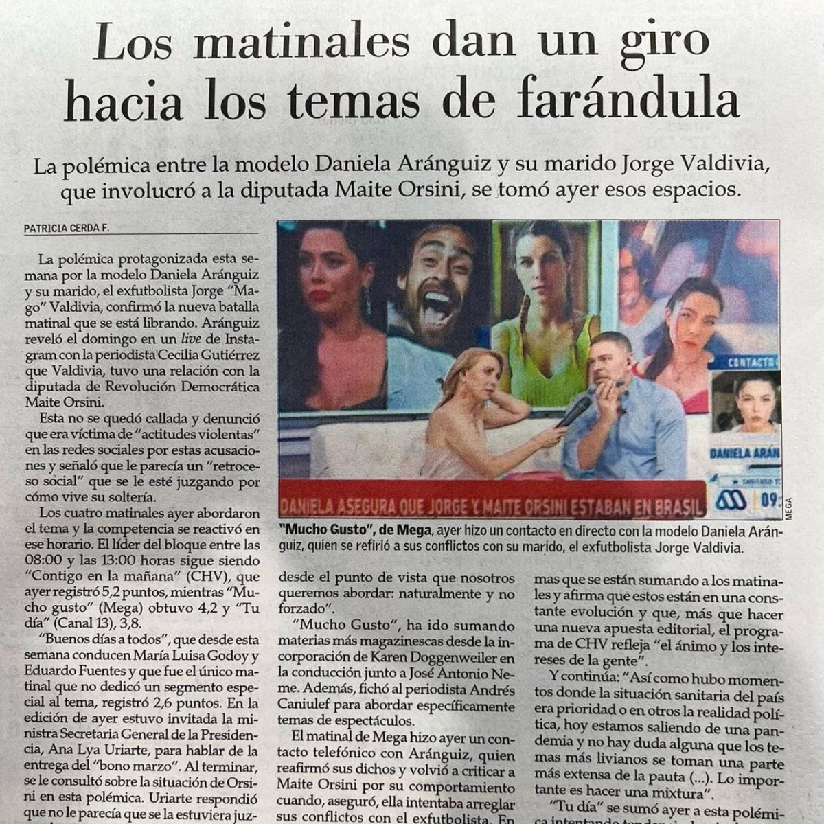 “Los matinales dan un giro hacia los temas de farándula” se puede observar en una noticia que compartió el periodista.