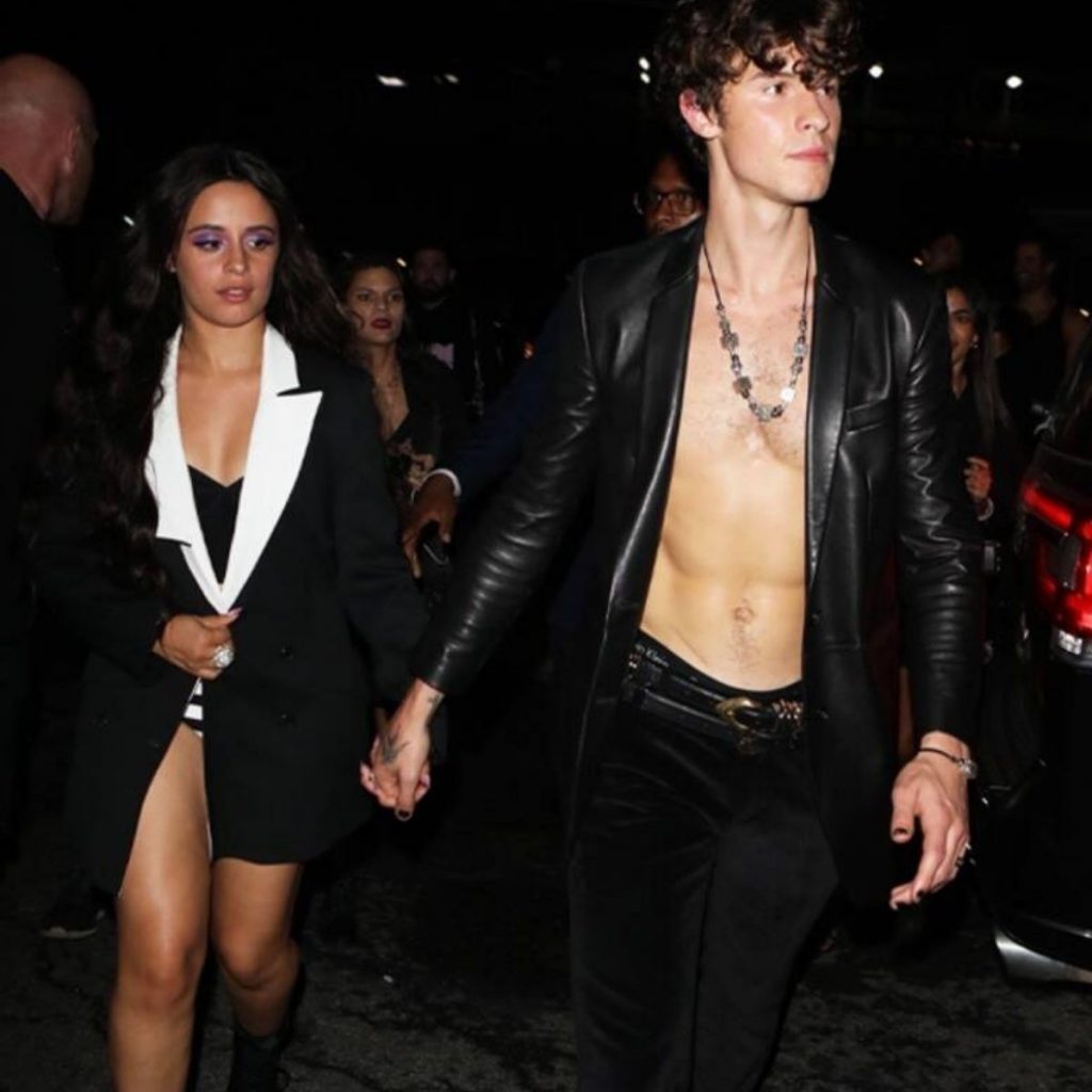 Shawn Mendes y Camila Cabello llegaron al after-party con estilo. Mientras Shawn parecía quedarse con su chaqueta de cuero, Camila se fue con un atuendo completamente nuevo, un blazer negro y pantalones cortos a rayas.