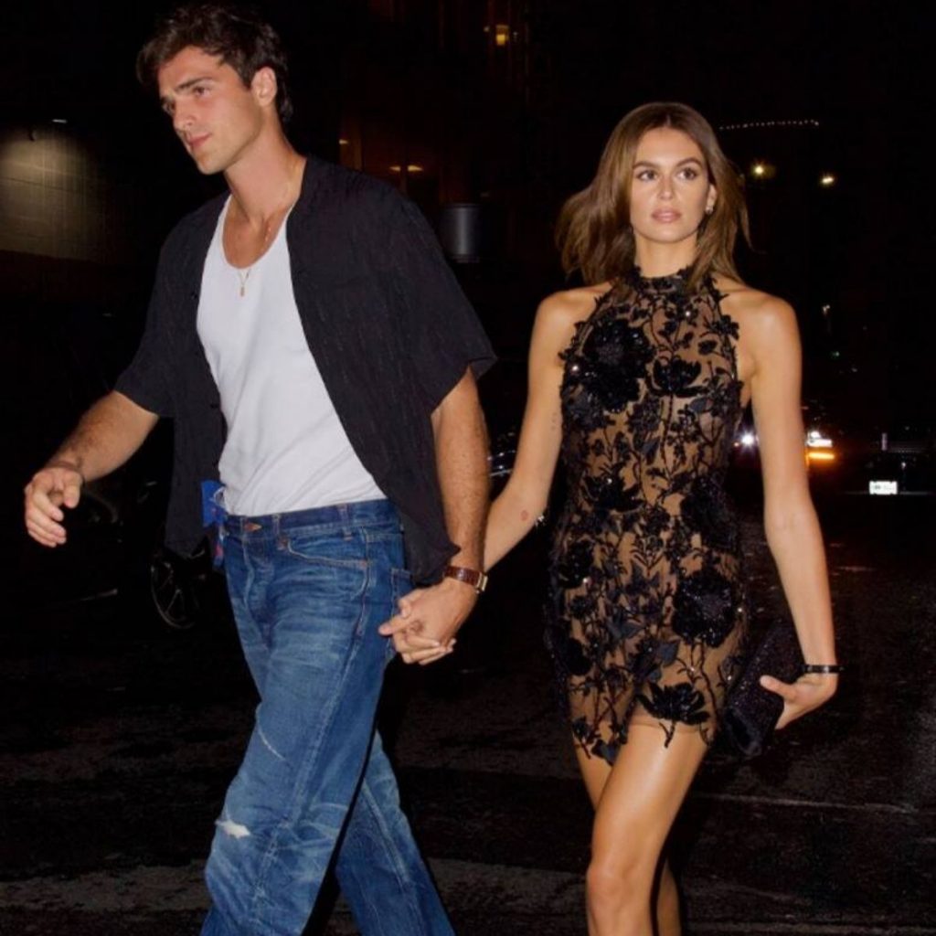 Kaia Gerber caminó de la mano de Jacob Elordi mientras se dirigían a la reunión posterior a la gala. La hija de Cindy Crawford se puso un vestido transparente con detalles florales negros.