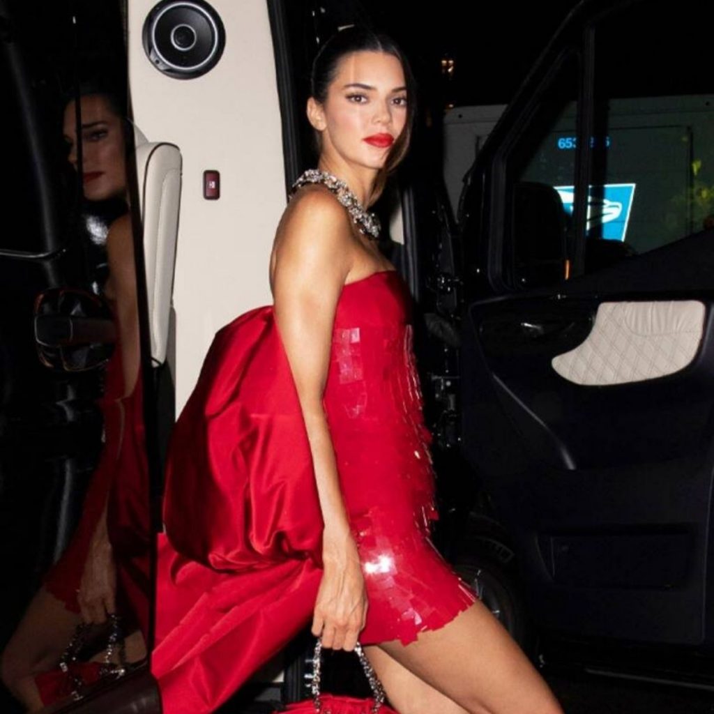 Kendall Jenner cambió su vestido Givenchy a un deslumbrante mini vestido rojo con una larga cola de lujo de la misma casa de moda.