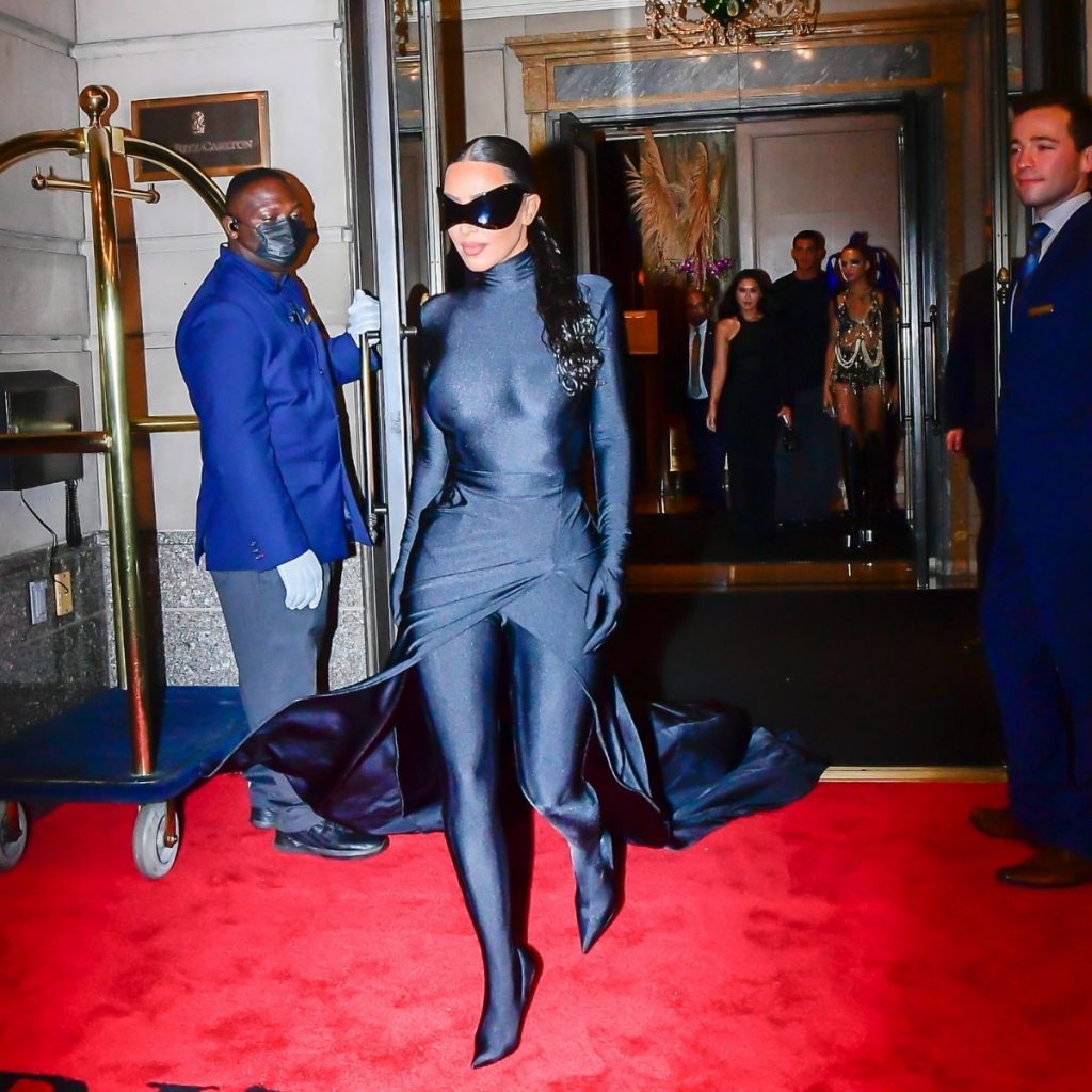 Después de usar un look Balenciaga con una máscara y una cola de caballo de 75 pulgadas, para la Met Gala, Kim Kardashian cambió a un segundo look ajustado para el after-party.