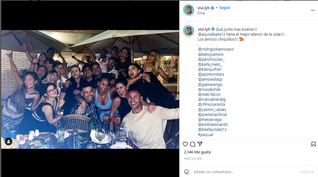 En ese contexto, y para dejar atrás la polémica entre la actriz y el jurado de Aquí se baila, los participantes se reunieron para carretear y bailar sin evaluaciones de por medio.