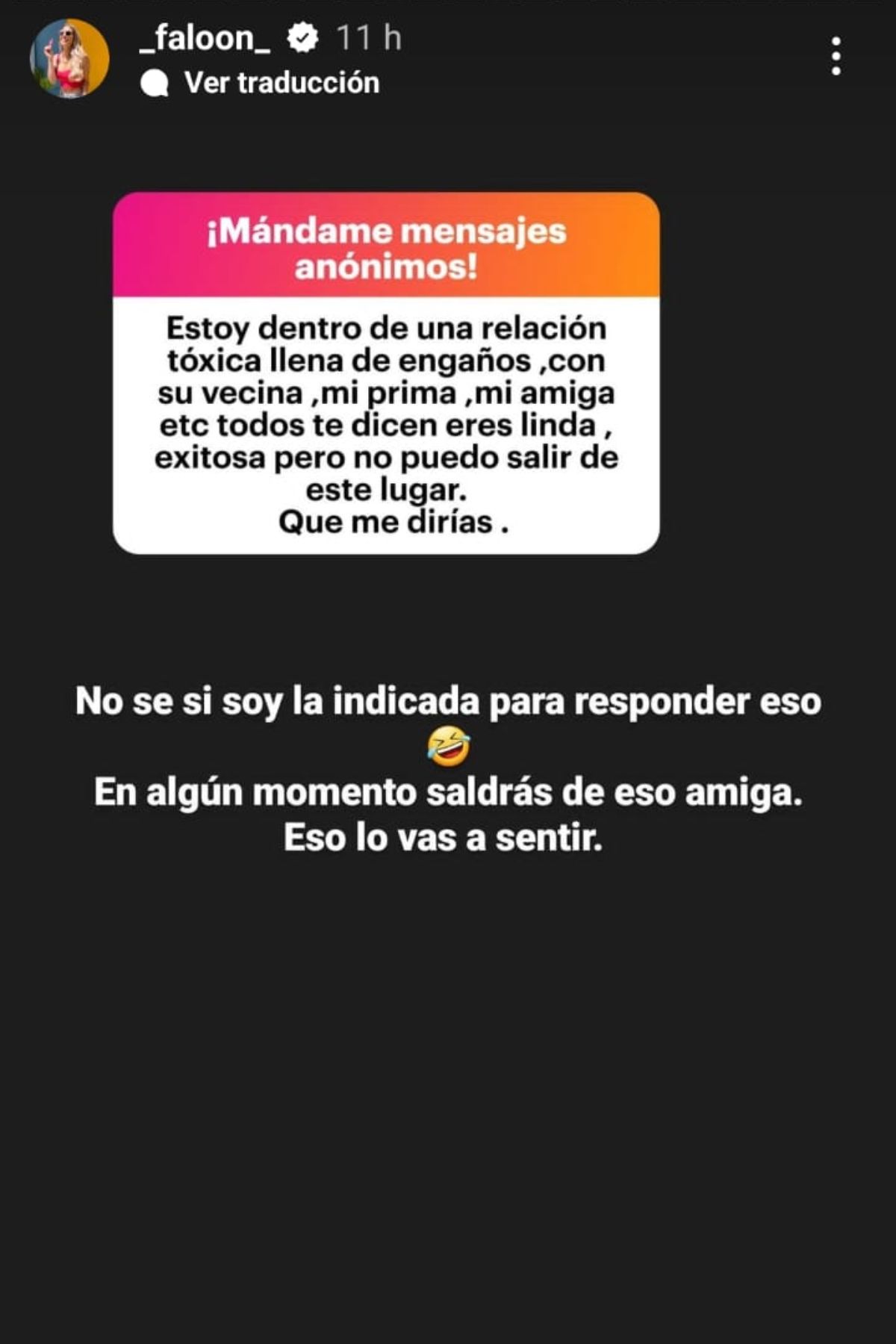 "Estoy dentro de una relación tóxica llena de engaños (...) pero no puedo salir de este lugar. ¿Qué me dirías?", le escribió la desconocida a Faloon Larraguibel.