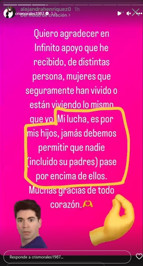 En eso, utilizó una parte de lo que escribió Alejandra Henríquez en su funa contra el deportista: “Mi lucha es por mis hijos para que nadie pase (incluido padres) por encima de ellos”. Ante esa frase, colocó “CARA DURA. Esto sí que no me lo puedo callar, porque es lo más hipócrita que he visto en mi vida”.
