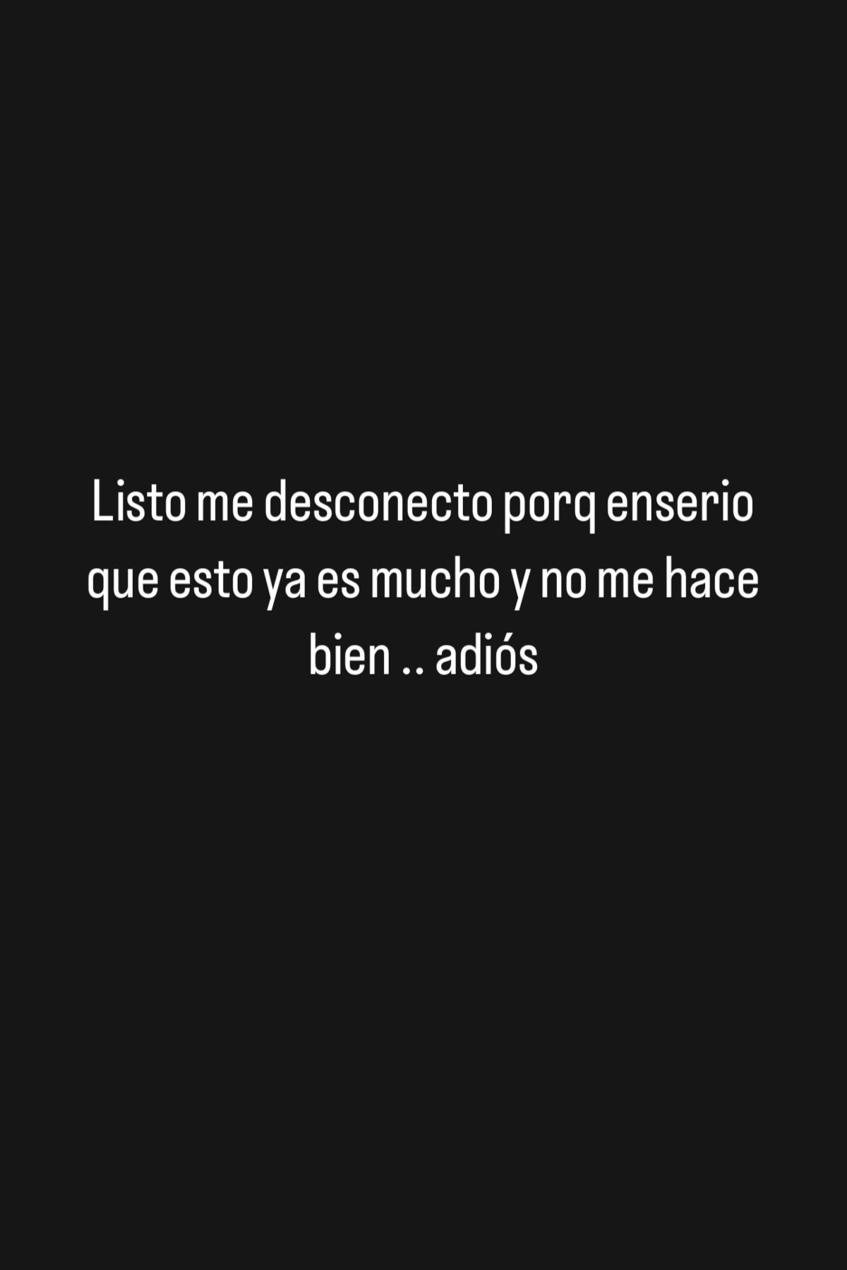Fue en sus historias de Instagram que la ex chica reality dio a conocer que se alejará del ciber mundo por unos días, ya que le estaba afectando la situación con la modelo argentina.