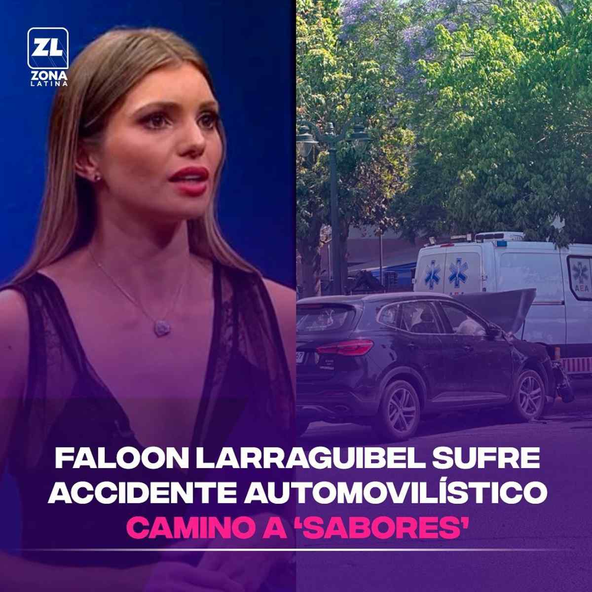 Hace algunos minutos el canal Zona Latina confirmó que Faloon Larraguibel sufrió un accidente automovilístico cuando se dirigía a las grabaciones del matinal Sabores, el cual anima desde hace varios años, siendo trasladada rápidamente a un centro de urgencias.