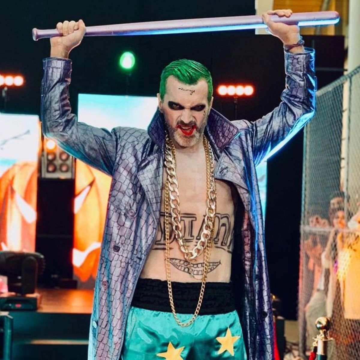 Imitando la versión de Jared Leto en Escuadrón Suicida, Cristián Sánchez pasó por un largo proceso de maquillaje para personificar al villano de Batman.