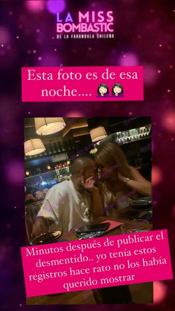 Y fue allí cuando la Ceci reveló algo impensado. Se trata de una fotografía que corresponde a esa misma noche, y en ella se ve a Arturo Vidal muy cariñoso con Daniella Durán.